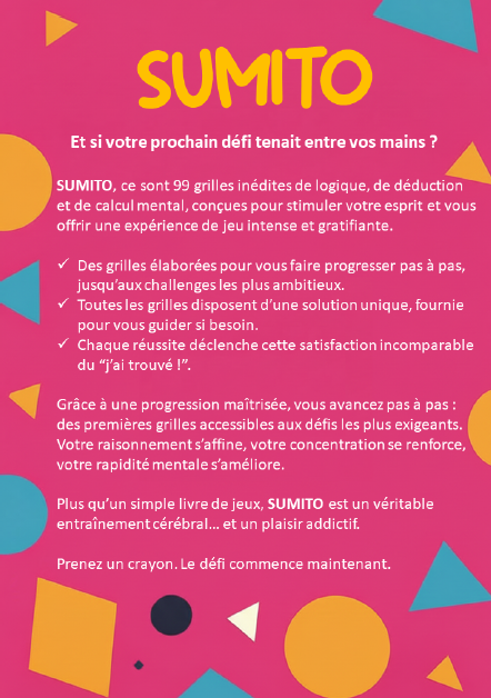 Vous pouvez également retrouver des grilles SUMITO® dans notre livre d'entraînement cérébral
